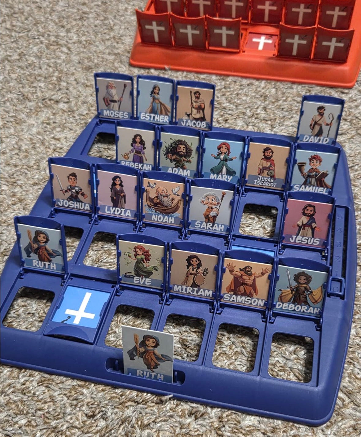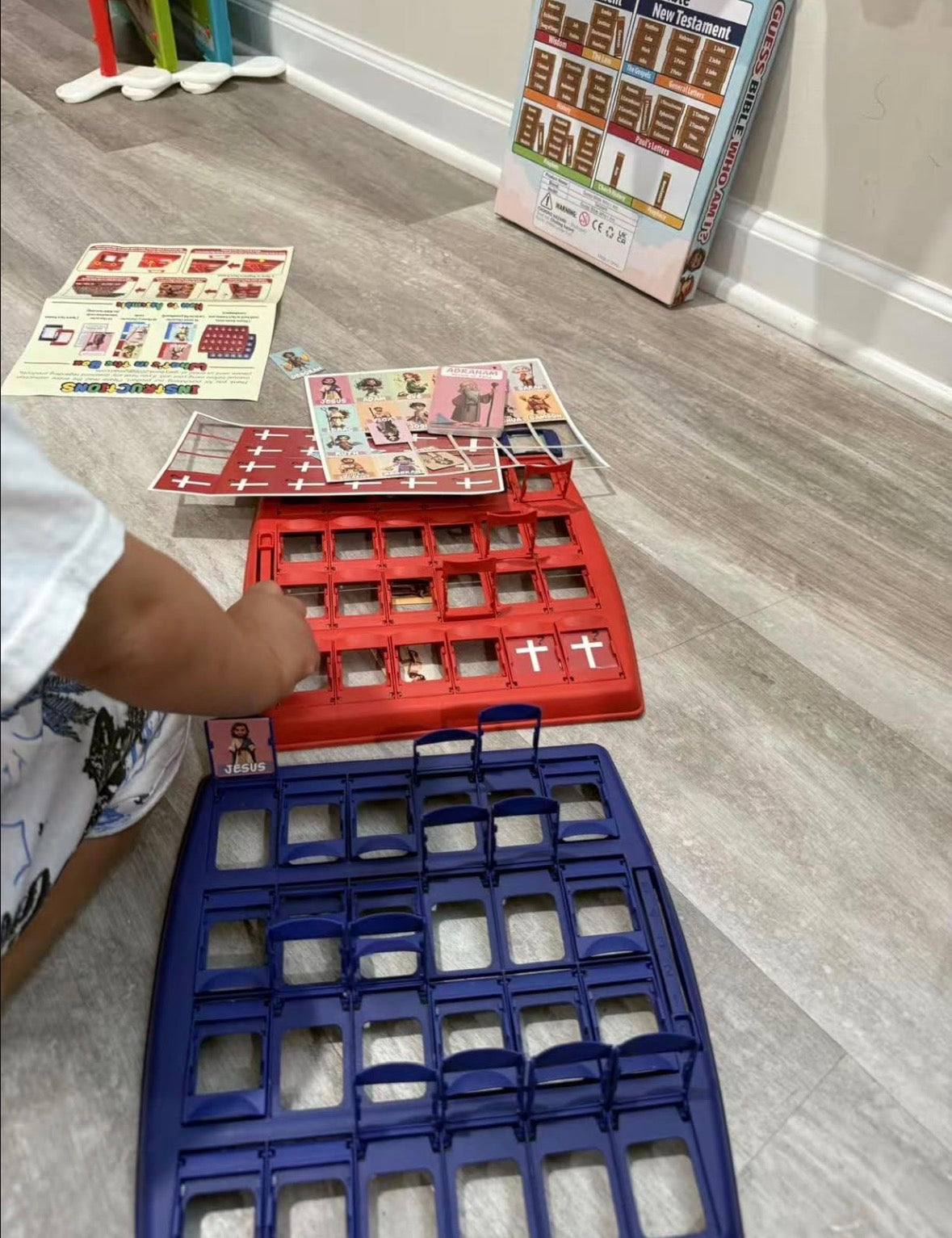 This game is so cute. Guess who with a bible twist. It also comes with cards so you can learn facts about the characters, if you don't know them.My kids have been loving playing this.